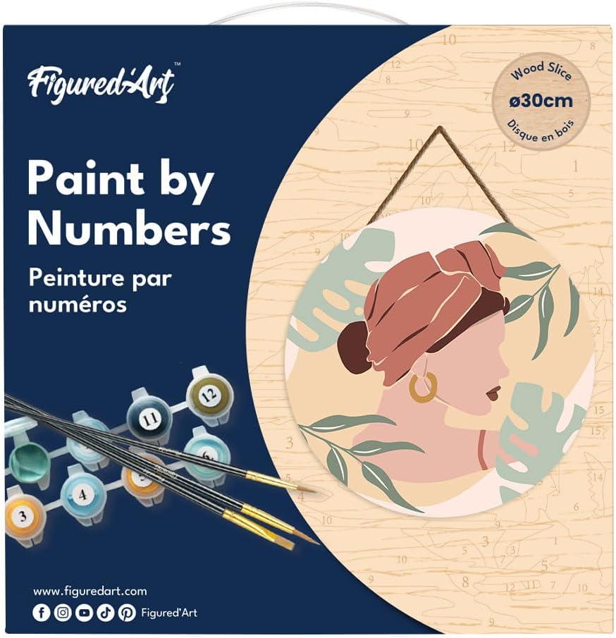 | Included Components | Pre-printed wooden disc, 3 Figured'Art brushes, acrylic paint jars, instruction manual in French, miniature design image with colour list |