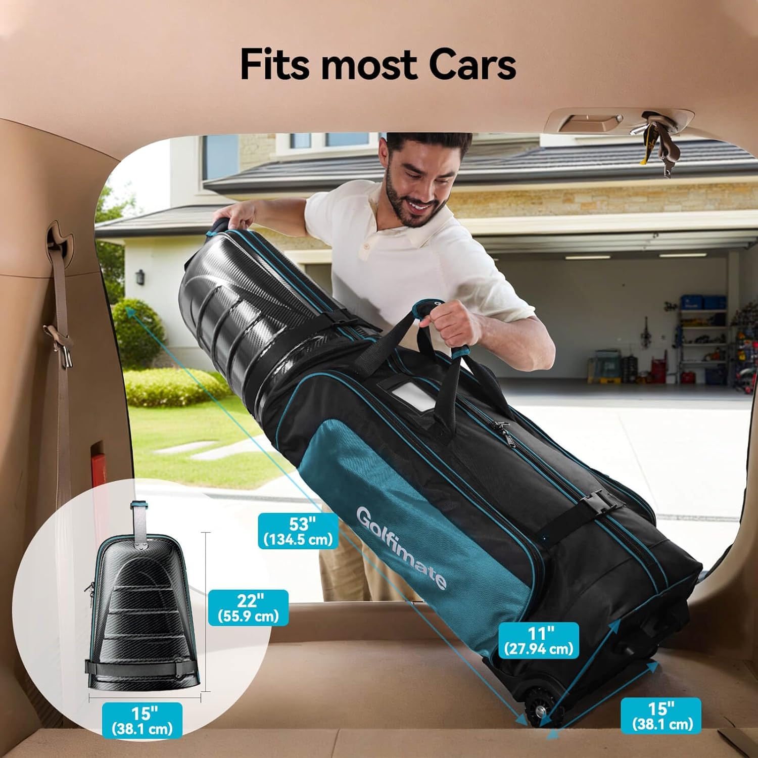 Built for the frequent flyer, Golfimate golf travel bag with hard top protection is airline approved and designed with heavy duty 1680D oxford. Smooth rolling wheels and sturdy handles make transport effortless from home to the airport to the course.