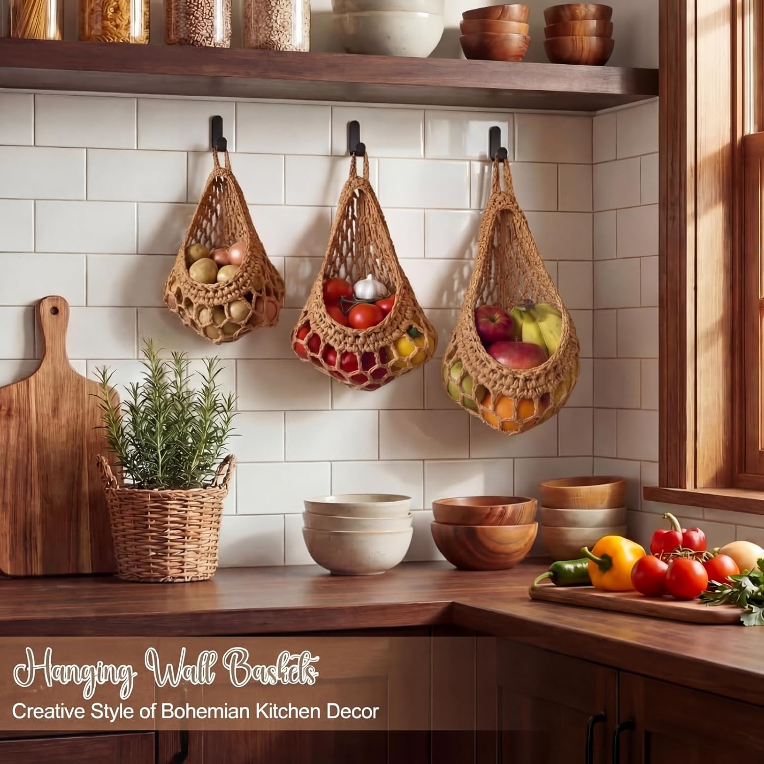 | Included Components | 3 x Jute hanging baskets, 3 x Stainless steel hooks |